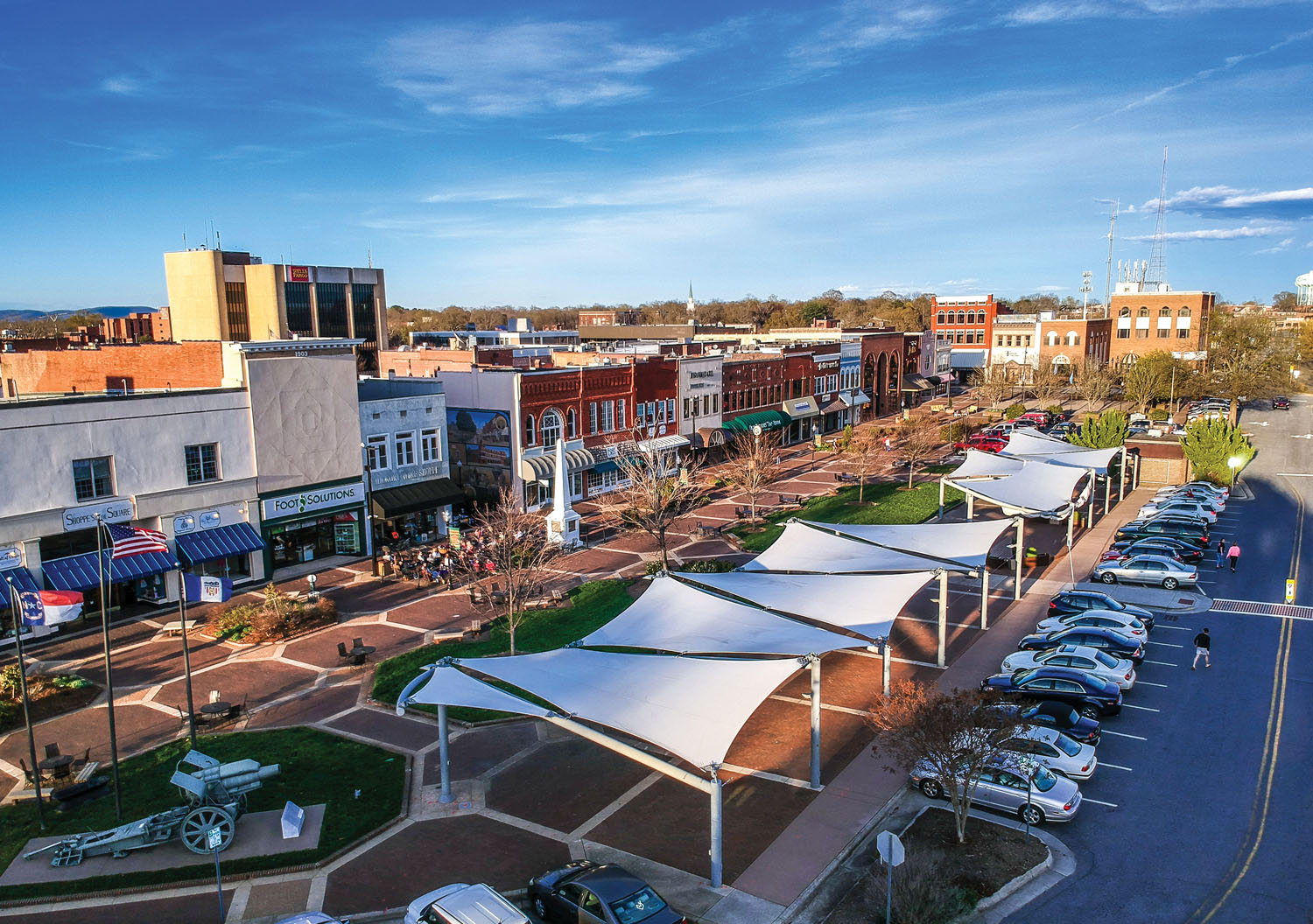 While 500,000-plus visitors head to this city annually for its colossal Hickory Furniture Mart, for a more intimate, local experience, wander through the Hickory Farmers Market. There, you’ll find a warm community of farmers and makers of all types. On Wednesday and Saturday mornings, growers, bakers, potters, and painters sell their wares under the shade sails of Union Square. (This walkable downtown hub also houses a collection of local shops, including women’s boutiques Ella Blu and Lilly Thomas, DASH Home & Kitchen, and Hickory Wine Shoppe.)