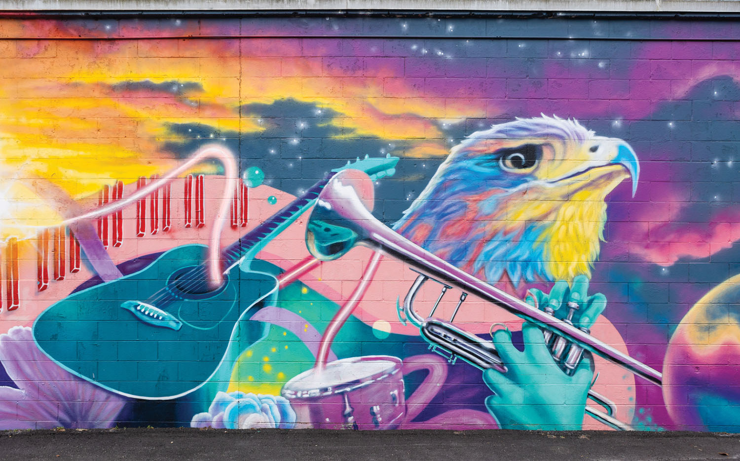 Lexington Avenue Gateway mural (collaboration by artists Molly Must, Daniel Beck, Joshua Spiceland, Harper